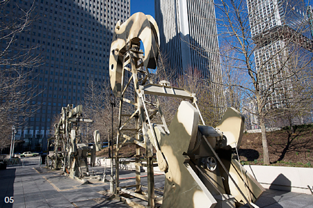 巫:据我所知这是中国公共雕塑展在国外最大的一次显示。虽然有很多的中国当代艺术展在国外举行了,但是像这样直接使用最主要的公共空间,体量如此巨大(展览中的作品均在5米到7米以上的高度),历时近两年的大型展览还是没有过的。美方在运输、装配等方面的投资很不少,在目前经济萧条的状况下还是很不容易的。由于这个展览和画廊及商业运作完全没有关系,是使用纳税人的钱策划的,我感到对介绍中国当代艺术是有帮助的。